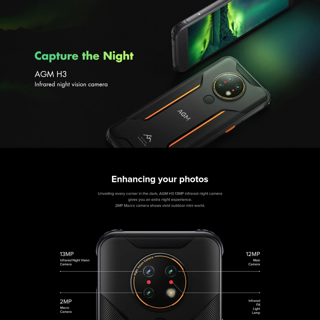 Product Name: AGM H3 Wytrzymały Smartfon 5.7 "HD + Celular Android 11 MTK6762 Octa Core Kamera Noktowizyjna NFC Odcisk Palca 5400mAh Telefon Komórkowy